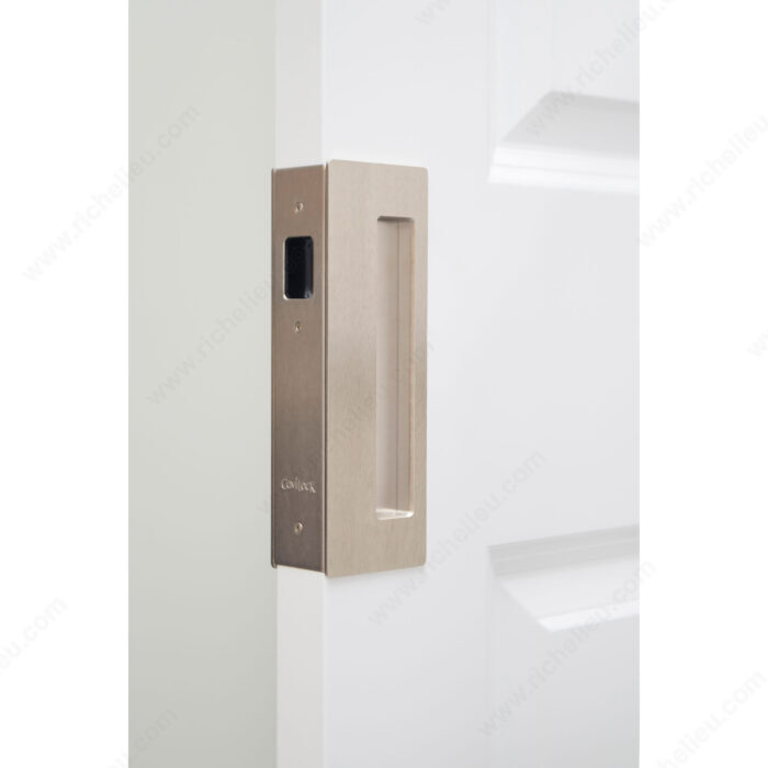 The front edge incorporates a finger hole to retrieve the door from the pocket.